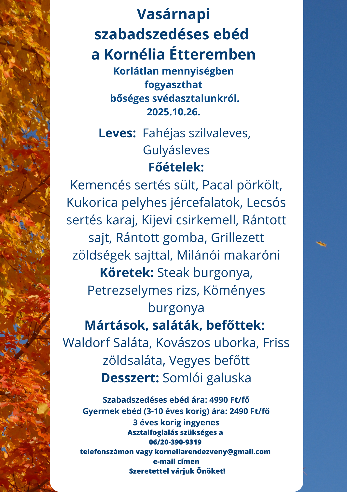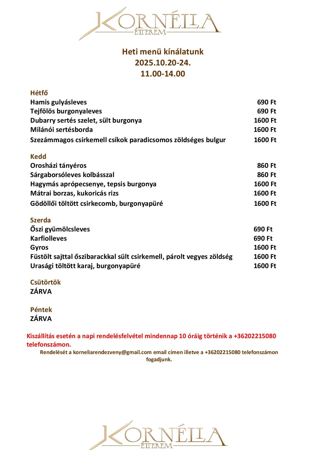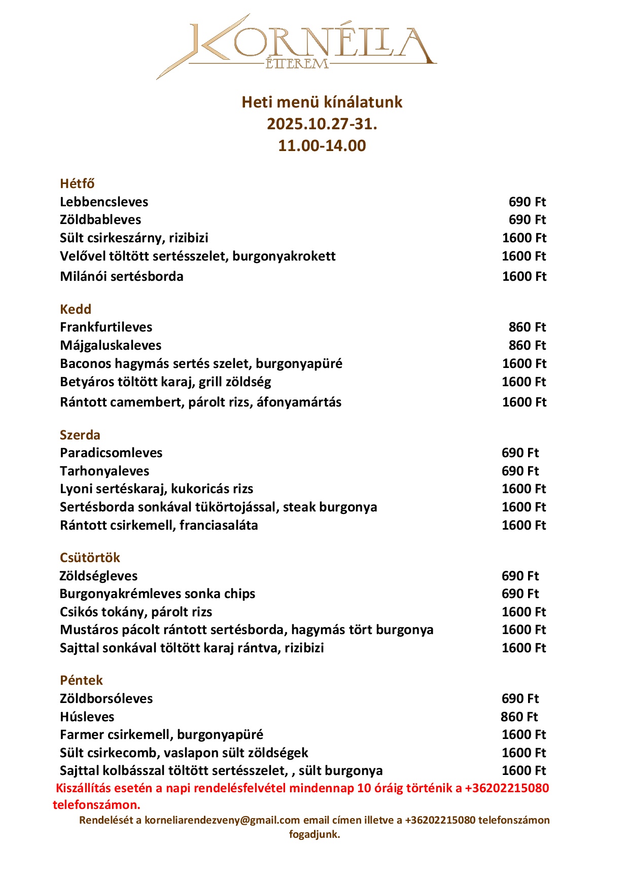 Szeretettel köszöntjük Önt a Kornélia Étterem – Cukrászda és Rendezvényközpont honlapján.
